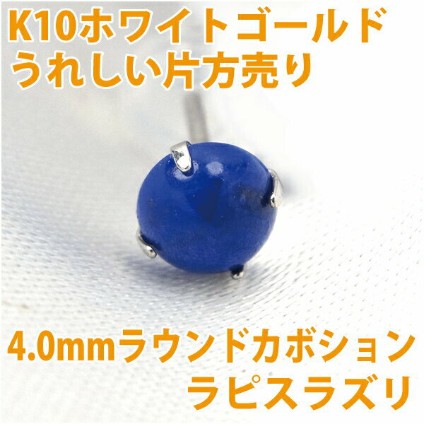 石天然ラピスラズリ4.0mmカボションポストK10ホワイトゴールド 0.65φ9.5mm重 さ0.2g 【カタログコードcat-0024】ラピスラズリってそんなに高い石じゃないんですが、トルコ石同様ピアスは本当に少ないですね。