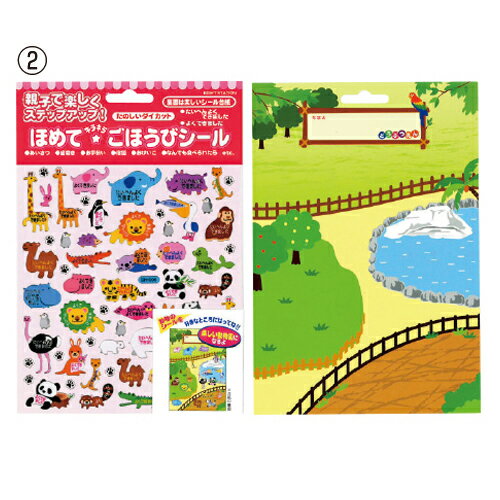 (2)動物園子どもが喜ぶキラキラごほうびシール!貼って楽しい台紙付き。