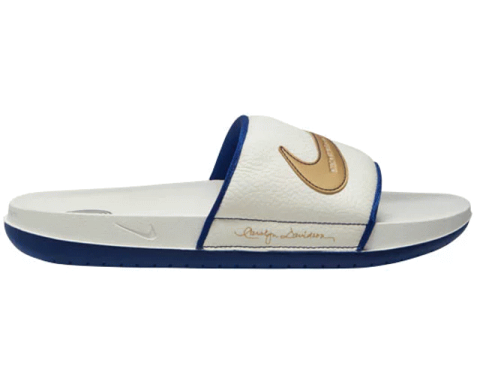 スウッシュの50周年を祝うナイキ オフコート スライドは トップクラスの快適さとスタイルを堪能できる一足。